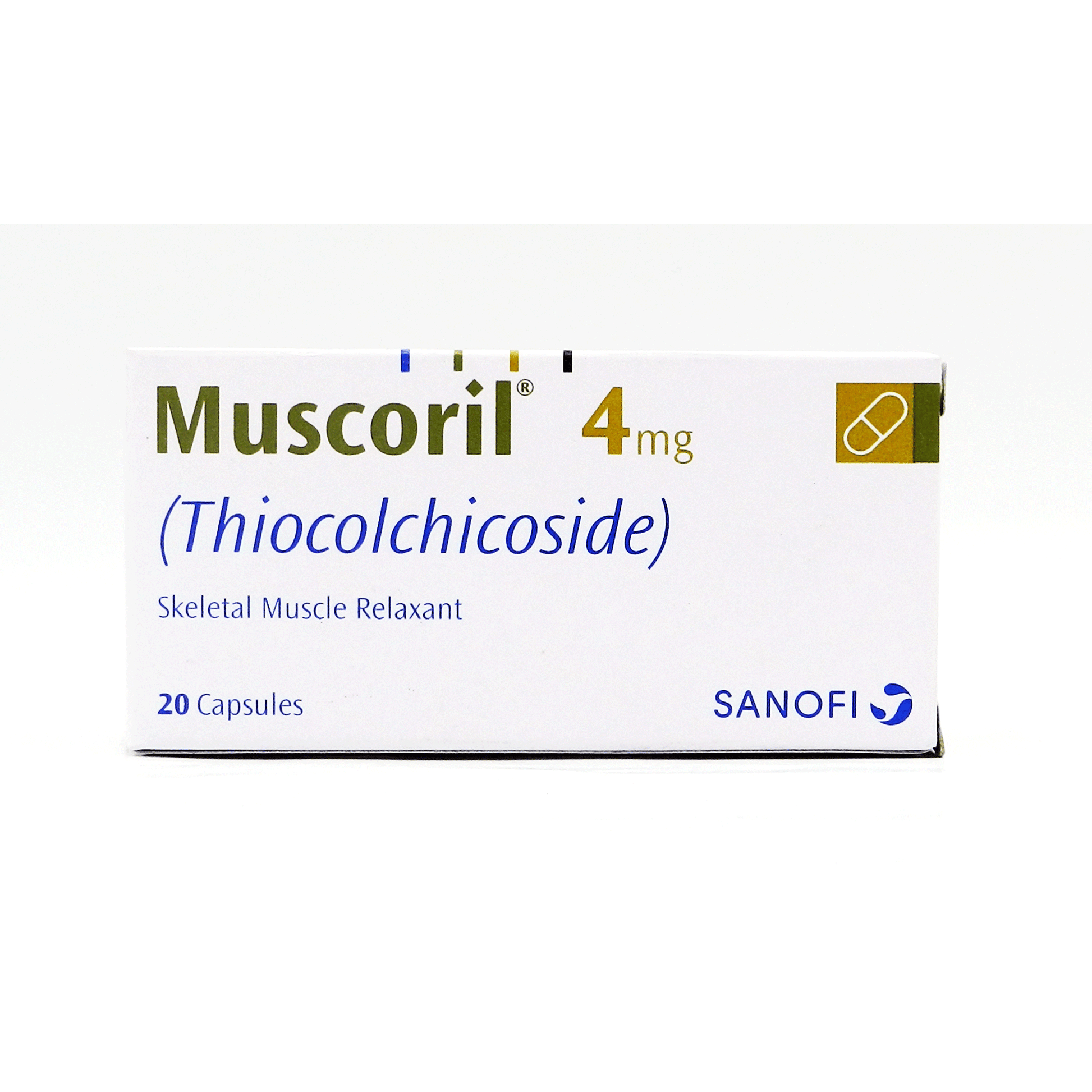 Product Type: Capsules [end-tab-body][end-tab-2] [tab-3][tab-title]Usage and Safety Information[end-tab-title][tab-body] Key Highlights: Muscoril is a muscle Relaxededant with anti -inflammatory and analgesic effects.